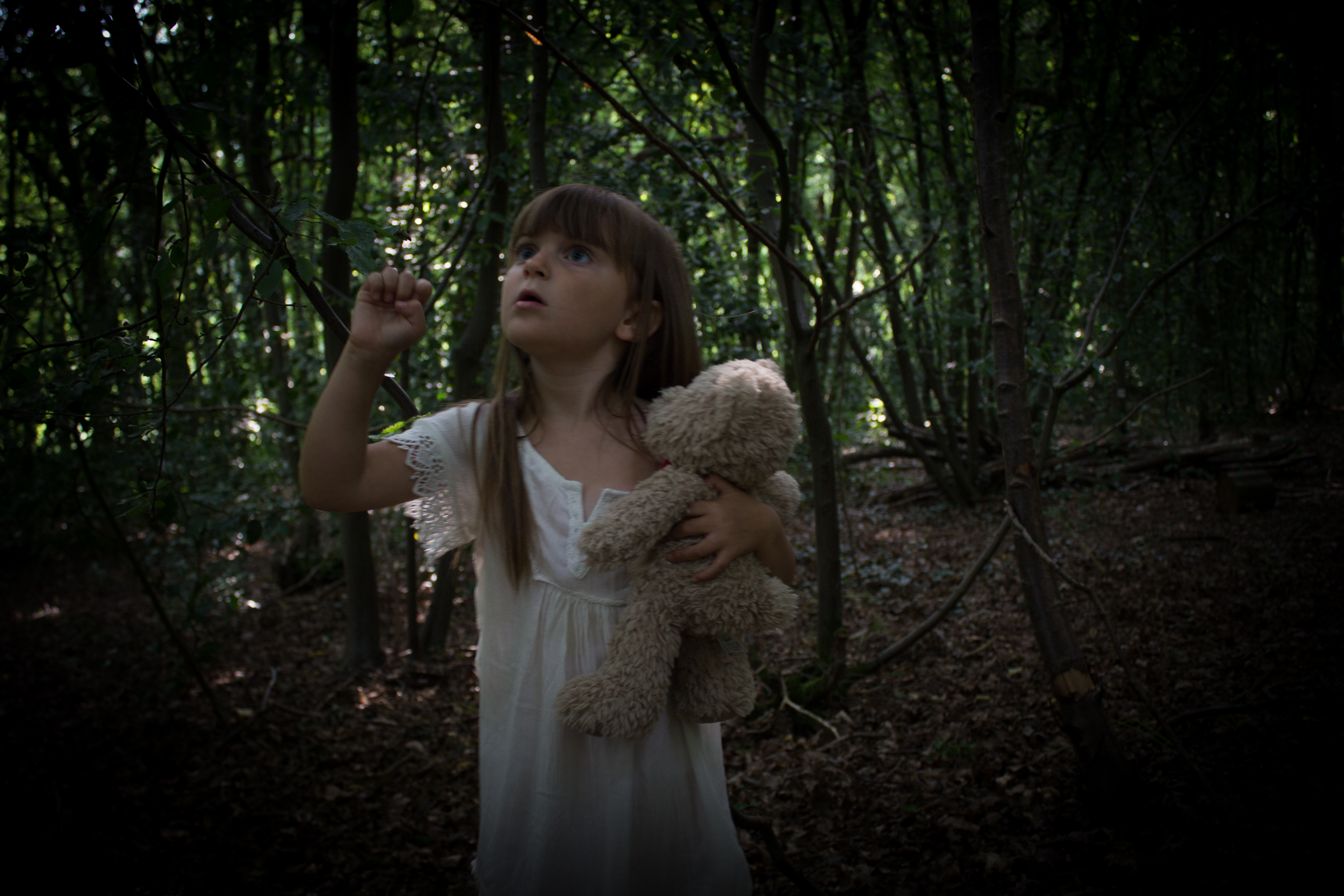 The other theme was “little girl lost in the woods”. I discussed this with Peytons mum before hand as I know it is quite an upsetting shoot for such a young girl. I love being creative and one of the things that photography allows me to do is explore different ideas. We decided on a white outfit and I asked for her bring a teddy with her as a prop.